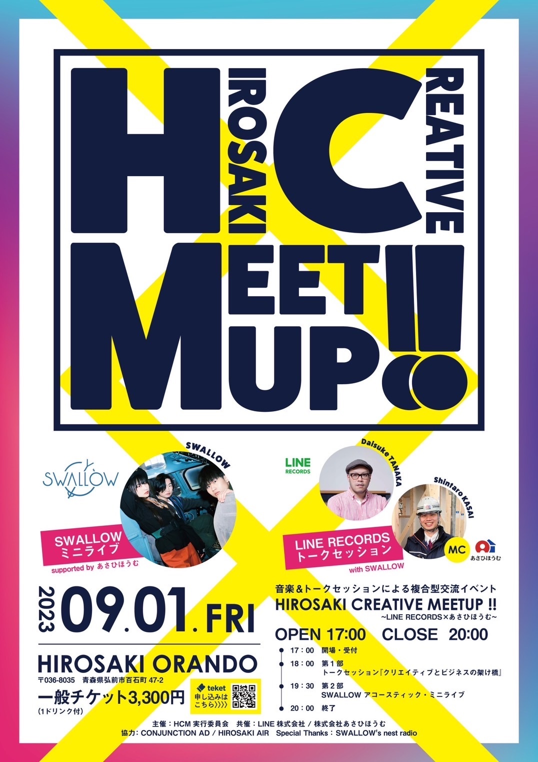 当日は青森県三沢市出身のバンドSWALLOWによるアコースティックライブはじめLINERECORDSのトークセッション、アート作品の展示なども行われるとのことでした。